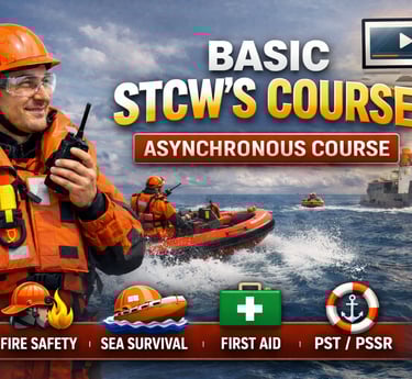 Basic STCW’s Course – Asynchronous maritime safety training: Self-paced online program that introduces new seafarers to the fundamental safety skills required by STCW, including survival at sea, fire prevention, first aid, and personal safety and social responsibility. Learners complete interactive modules and assessments remotely, gaining the essential knowledge to work safely on board and meet international maritime safety standards before joining a vessel.